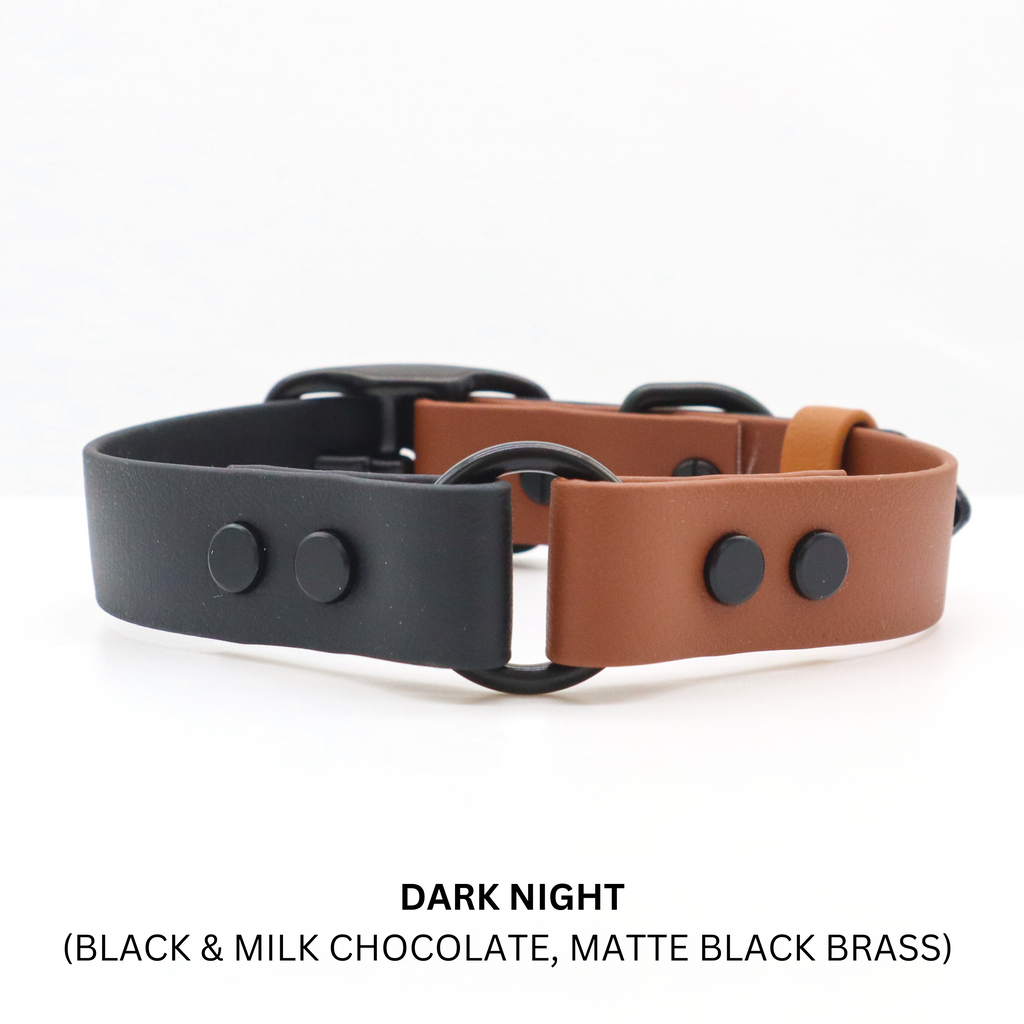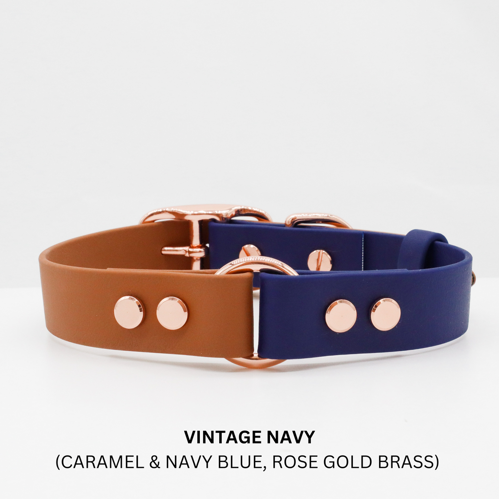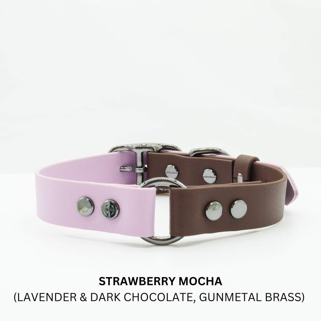 Customise a unique dog collar made with high quality brass to stand out from the others! This Biothane Waterproof Desire Dog Collar is a two-tone design dog collar suitable for the fashionable dogs of Australia.