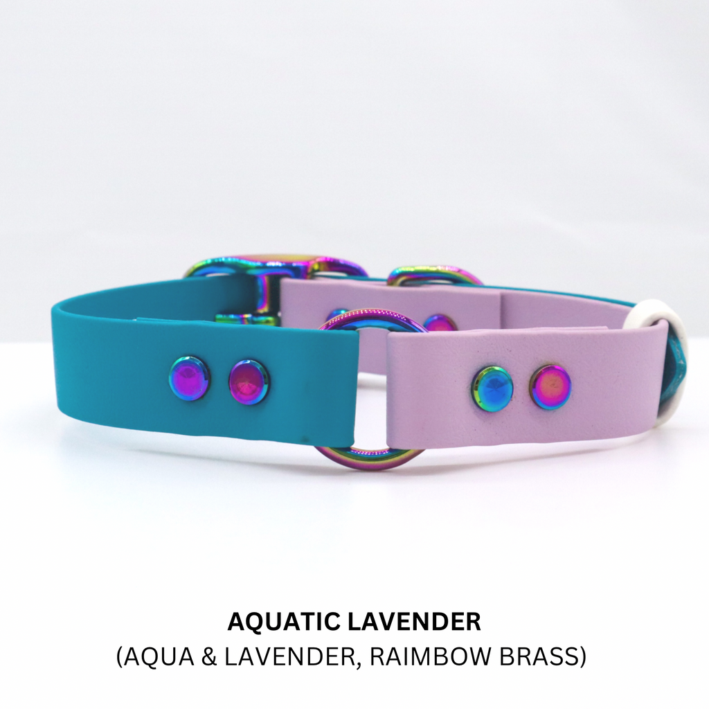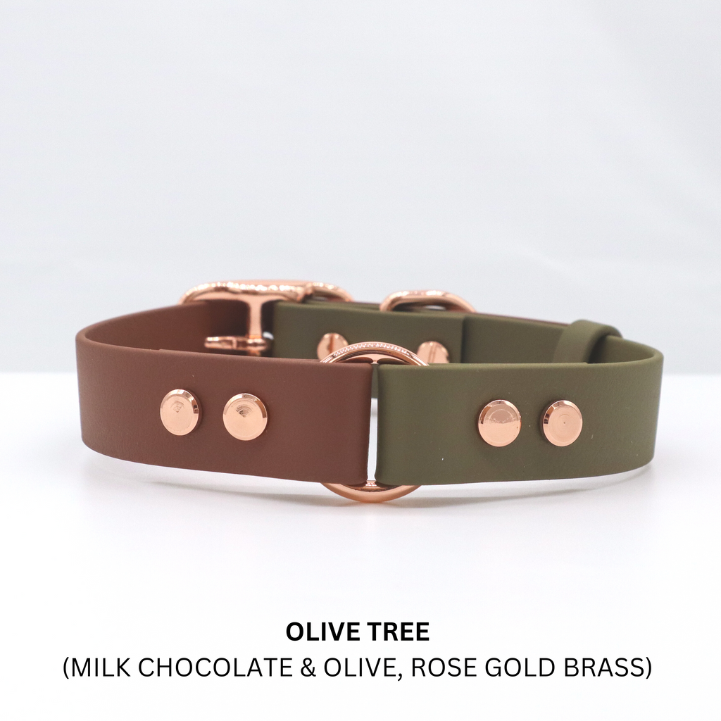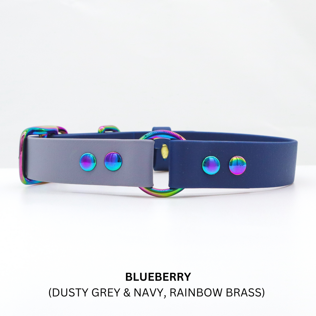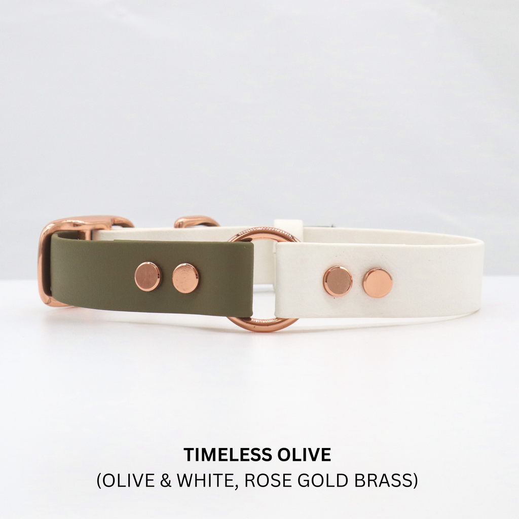 Customise a unique dog collar made with high quality brass to stand out from the others! This Biothane Waterproof Desire Dog Collar is a two-tone design dog collar suitable for the fashionable dogs of Australia.
